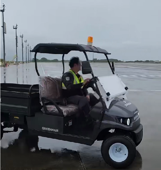 電動工作車,在機場碼頭的風雨中作業(yè),能滿足通過拖掛鉤連接所需要的載重貨物的需求,能幫助客戶在工作中提高效率,展示整車動力強勁的特點。
