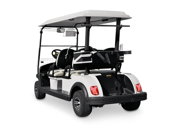 同向四座高爾夫球車,可以供4名球手和2名球童同時駕乘,也可以供3名球手和3名球童同時駕乘。 本車秉承GREENMAN 電動車一貫的優(yōu)雅、高端的理念,造型美觀大方; 2500mm超大軸距、舒適的豪華座椅、充分考慮人機工程學的靠背和扶手設(shè)計,